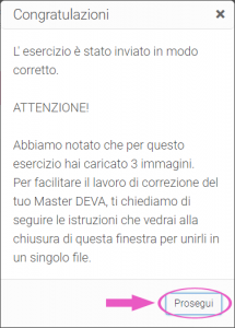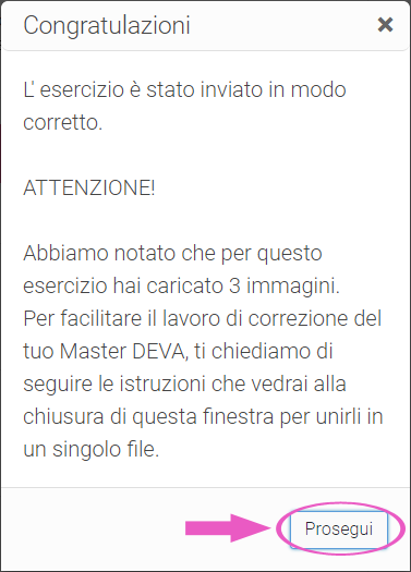 Se hai caricato più di un’immagine, il sistema ti avviserà e ti chiederà di seguire le istruzioni per unire questi file e crearne uno singolo da inviare al Master DEVA: il sistema creerà per te un singolo file da far controllare al tuo Master DEVA.
